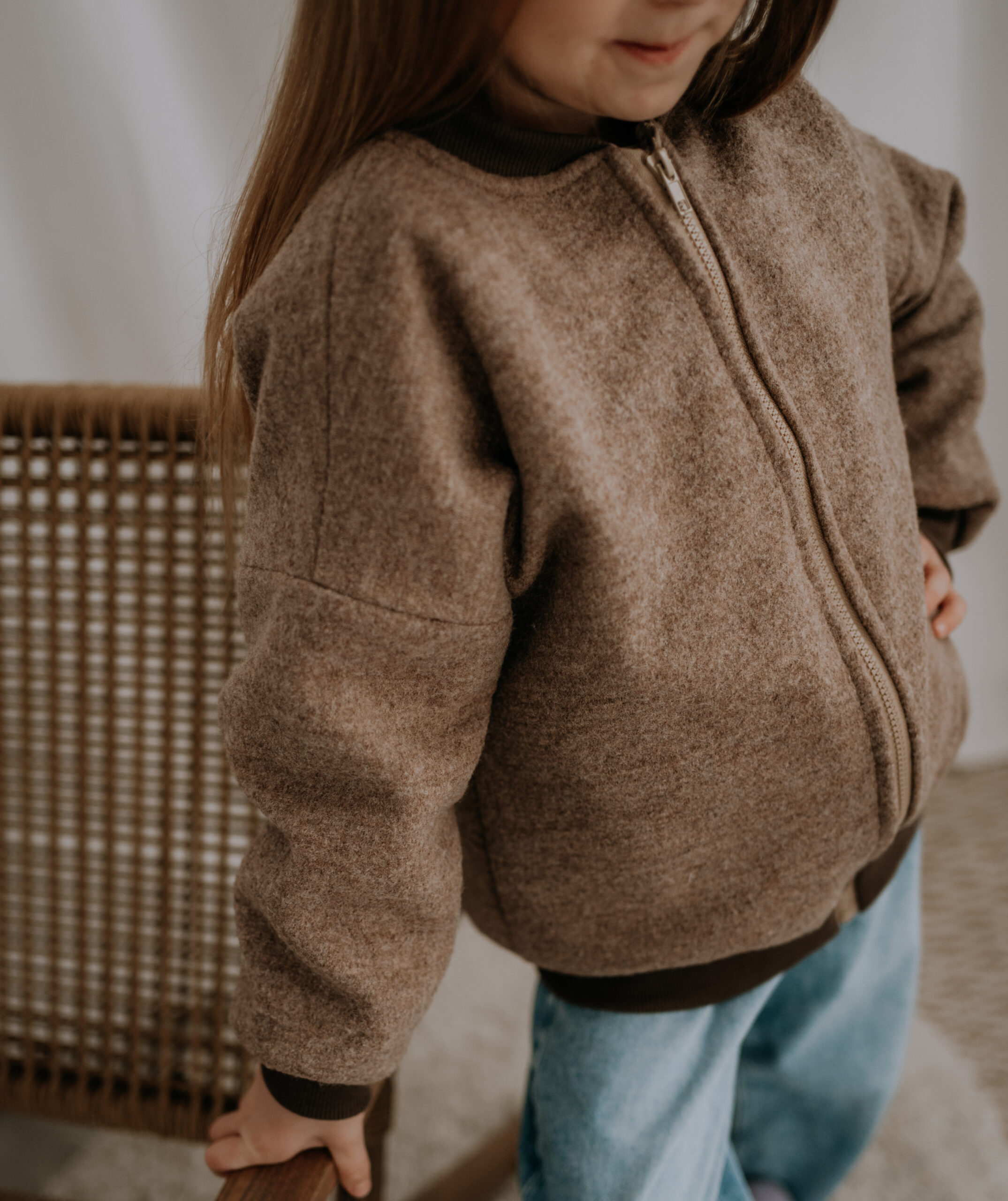 Kurtka dziecięca bomberka wełniana Merino w kolorze brąz melanż to funkcjonalne i ponadczasowe okrycie wierzchnie na chłodniejsze dni. Uszyta z wełny gotowanej Merino o gramaturze 260 g/m², łączy lekkość z bardzo dobrą izolacją termiczną. To idealna propozycja na jesień, zimę oraz wczesną wiosnę.