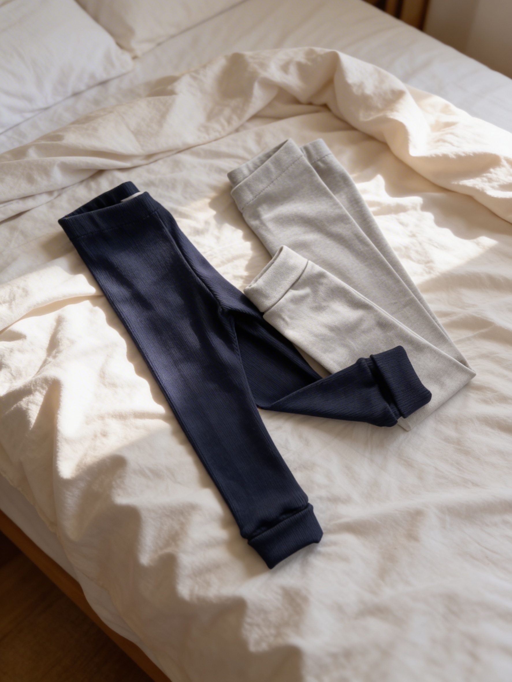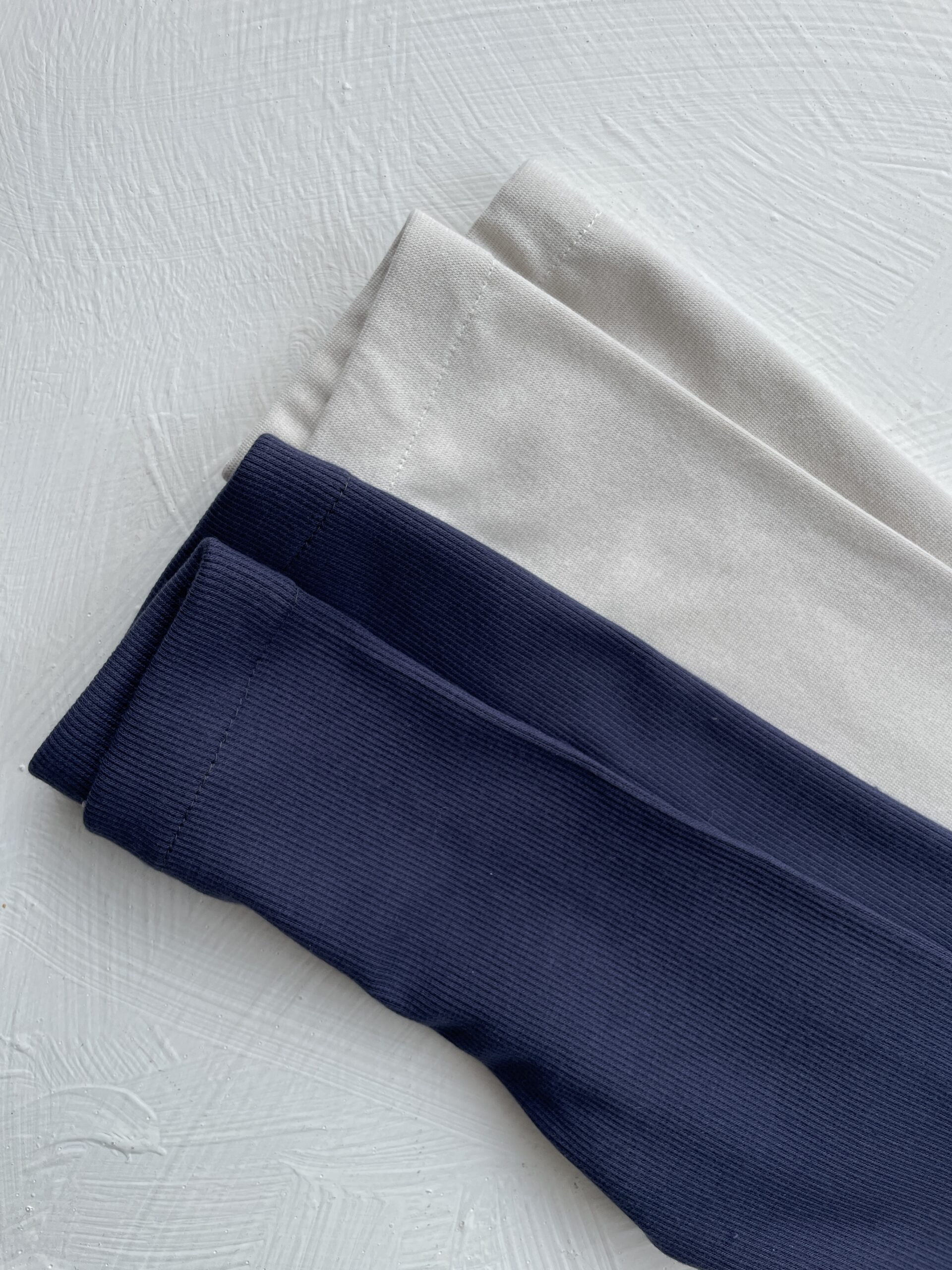 Cena dotyczy kompletu: 2x legginsy rosnące z dzieckiem (granatowe prążkowane, gładkie moonbeam)