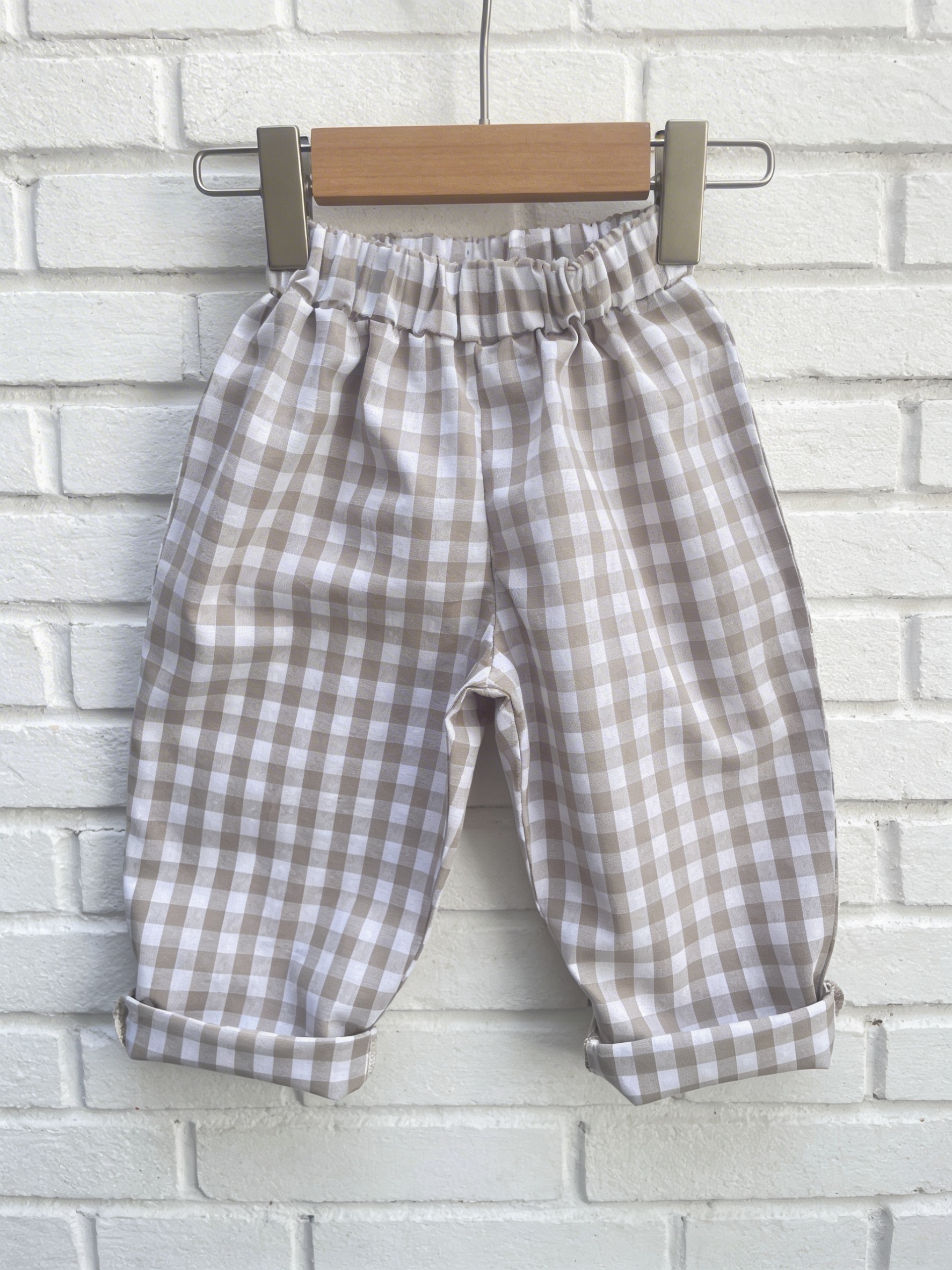 Kratka vichy to jeden z najbardziej rozpoznawalnych wzorów w modzie – subtelna, regularna i niezwykle estetyczna. W wersji beżowo-białej tworzy ciepłą, naturalną kolorystykę, która doskonale wpisuje się w styl minimalistycznej mody dziecięcej. Spodnie w kratkę vichy łatwo zestawić z prostymi t-shirtami, koszulami, bluzami czy sweterkami.