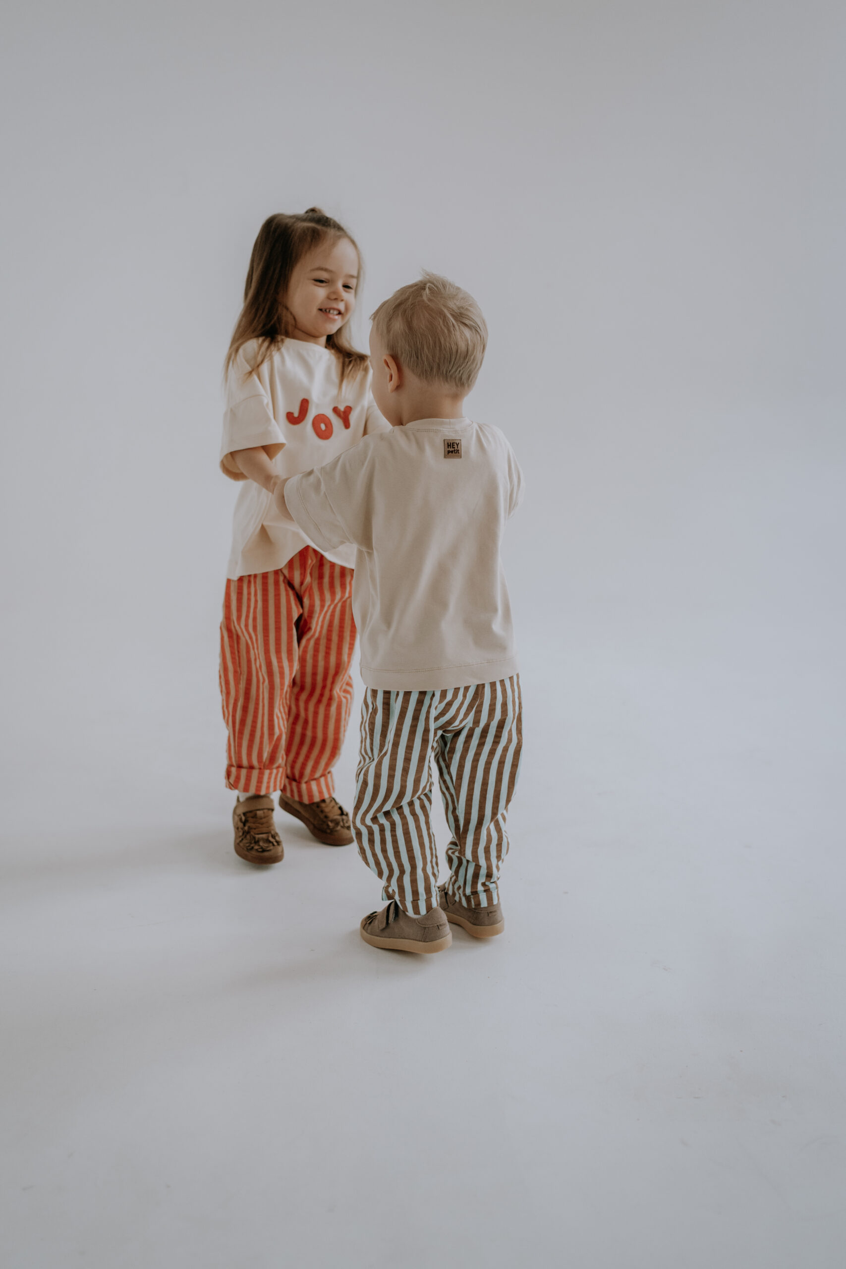 Dzięki uniwersalnemu fasonowi spodnie dziecięce w paski doskonale pasują do T-shirtów, bluz czy lekkich swetrów, tworząc wygodne stylizacje na co dzień.
